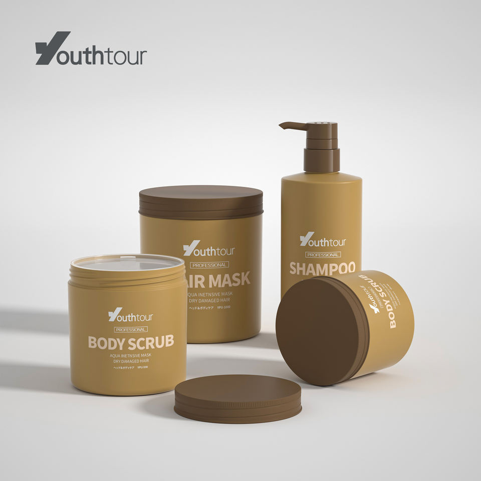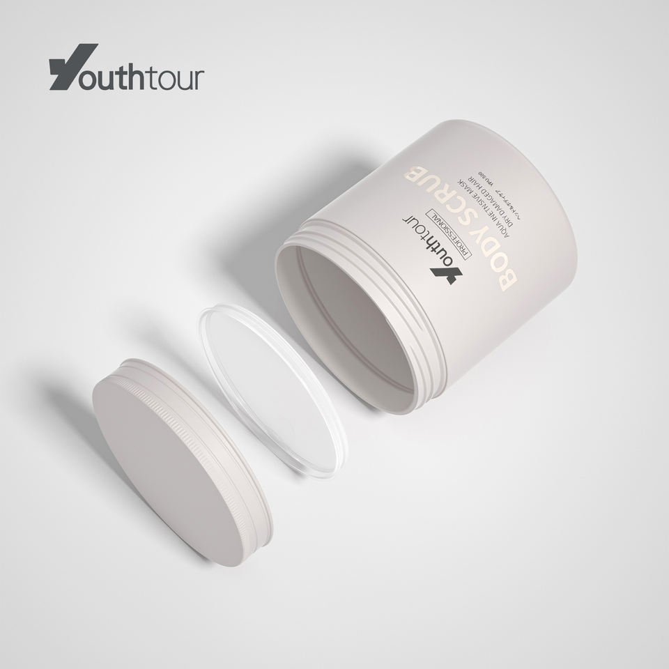 YPU Fabricación de inyección de plástico cosmético exfoliante corporal tarro redondo con tapa boca ancha botella de tratamiento para el cabello botella de belleza 1000g