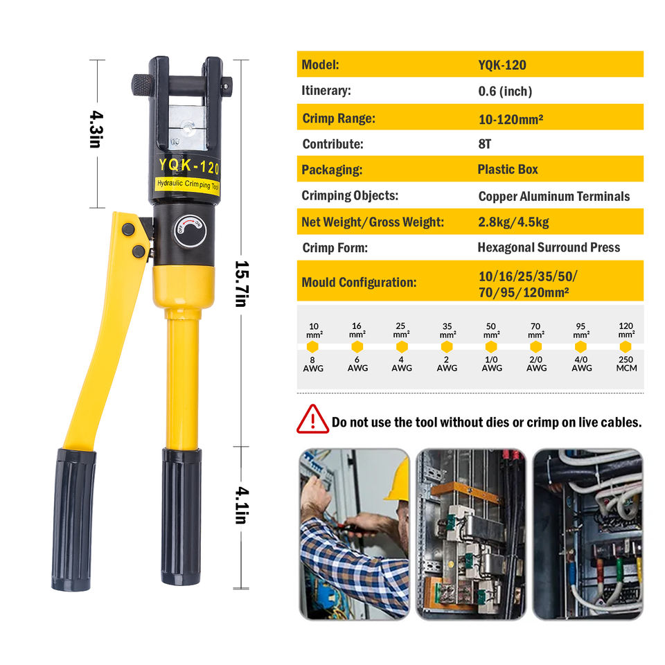 Gama de crimpado:Cu 10-120mm2/Al 8-95mm2