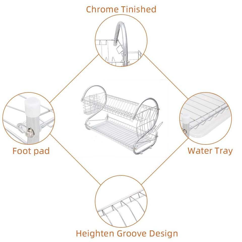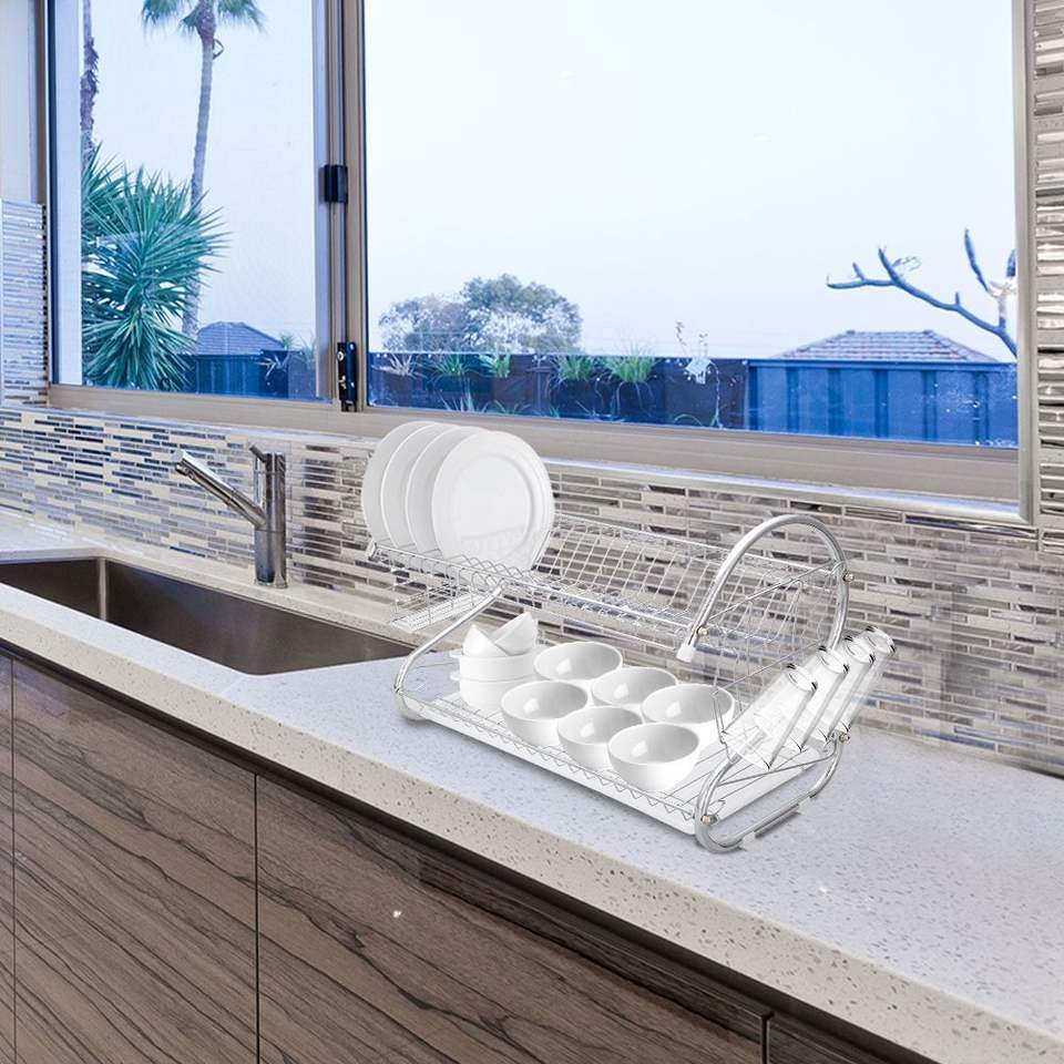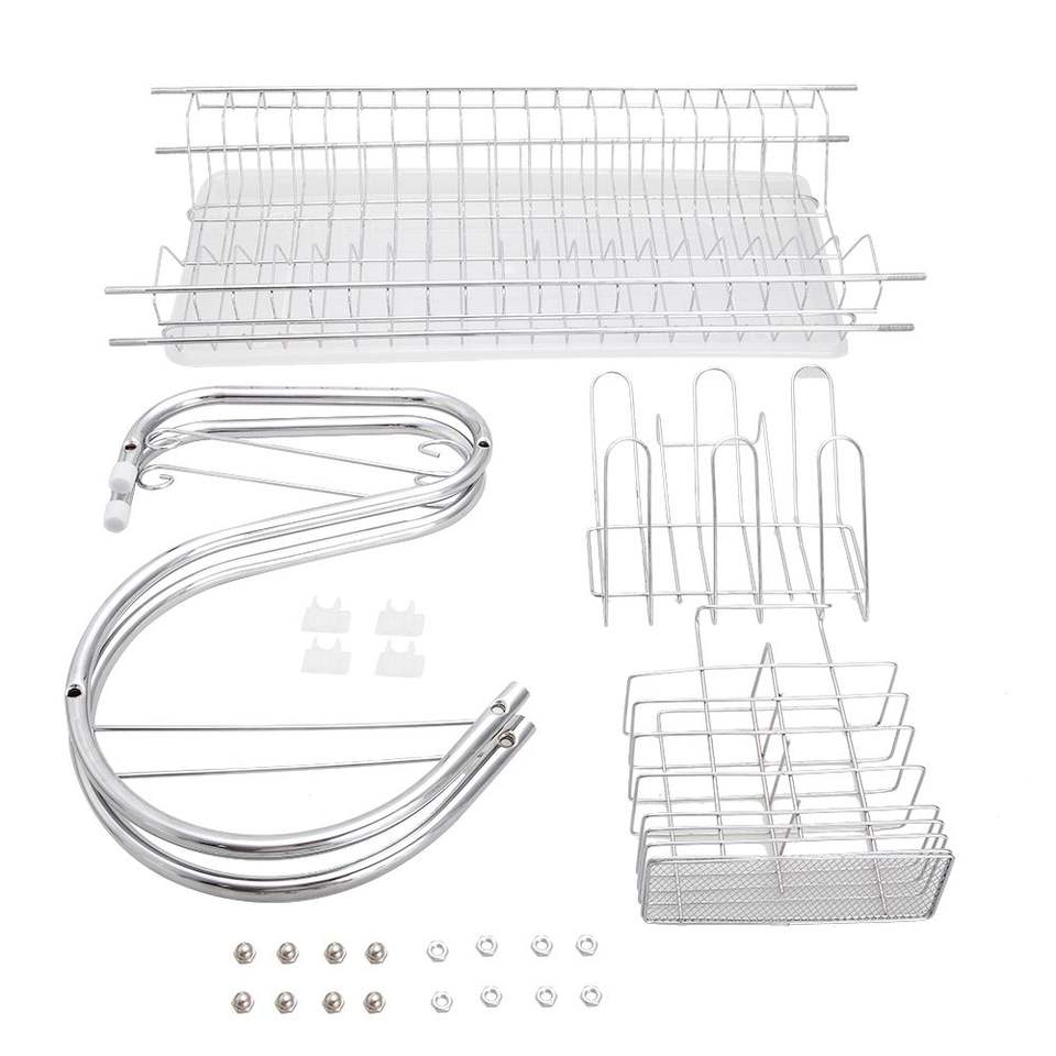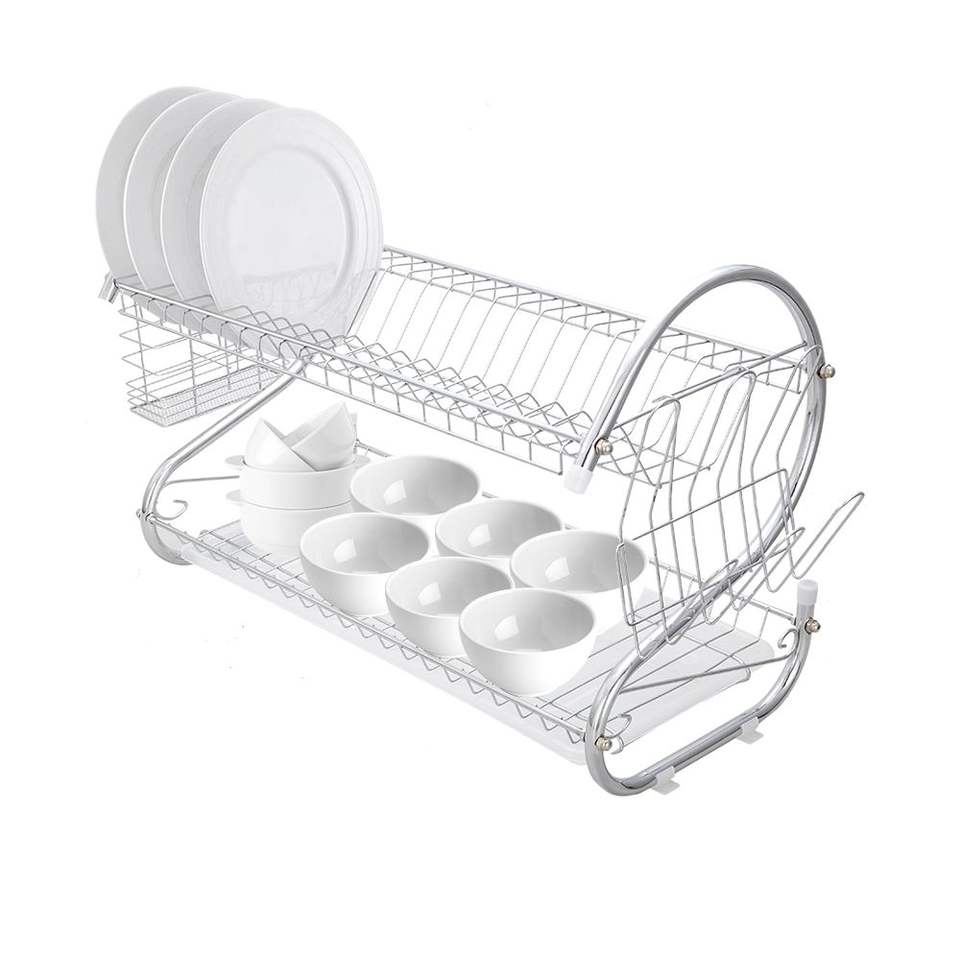 Escurridor de Platos Multifuncional en Forma de S de Doble Capa de la Colección YS, para Escurrir Platos, Tazones, Palillos y Cucharas, Utensilios de Cocina