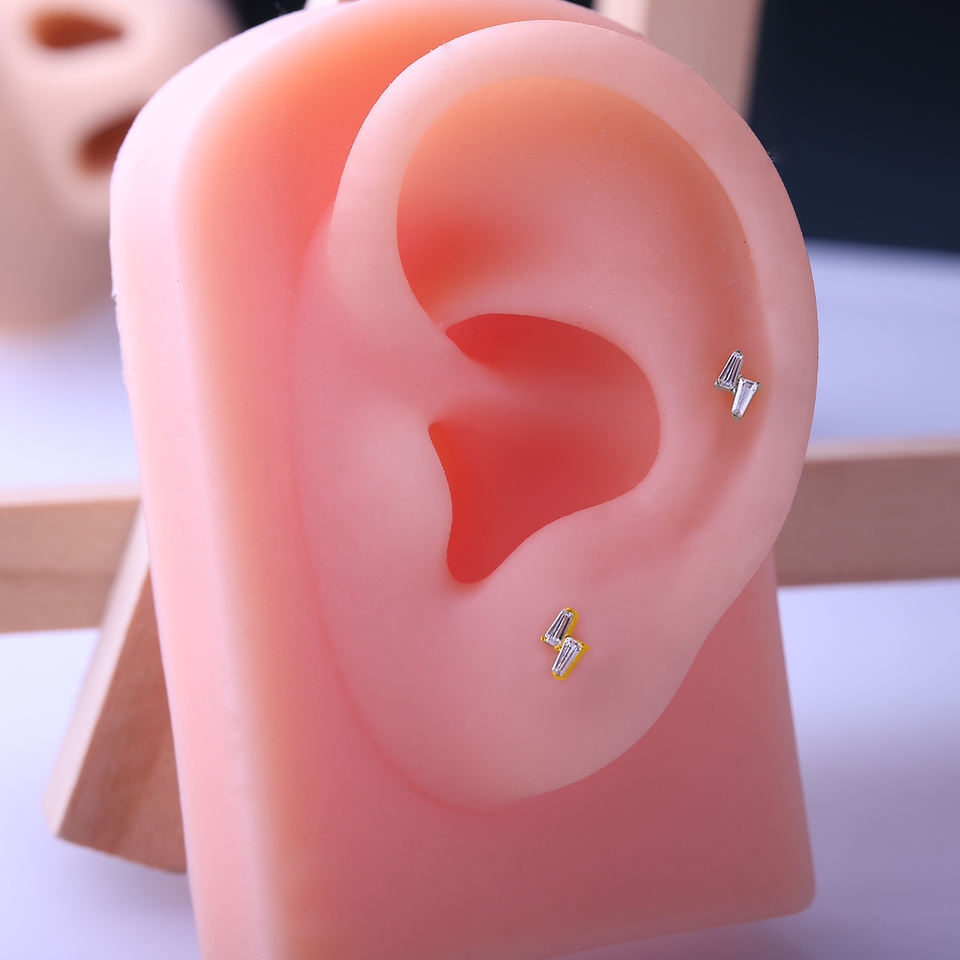 Anillos de Labio YS Engagement, Piercing Labret, Joyería Corporal de Titanio, Chapado en Oro de 24K, Zirconia Cúbica Baguette, Parte Superior con Rosca Interna, Pendiente para Nariz