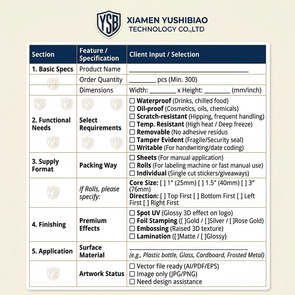 Formato de etiqueta (Pedido mínimo: 500 unidades)