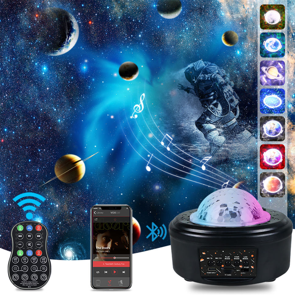 Proyector de Estrellas YSH RGBW, Luces de Galaxias Estrelladas, Mini Lámpara LED Nocturna con 10 Planetas, Música y Voz, Lámpara Lunar para Regalo, Decoración de Habitaciones