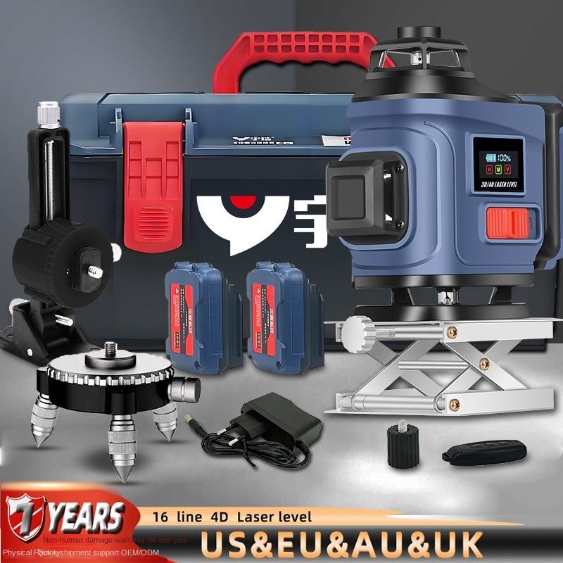 Nivel Láser Verde de Alta Precisión YU, 16 Líneas, 5W, ABS, para Uso en Exteriores, con Función de Nivelación de Agua, Ideal para Marcado, ODM