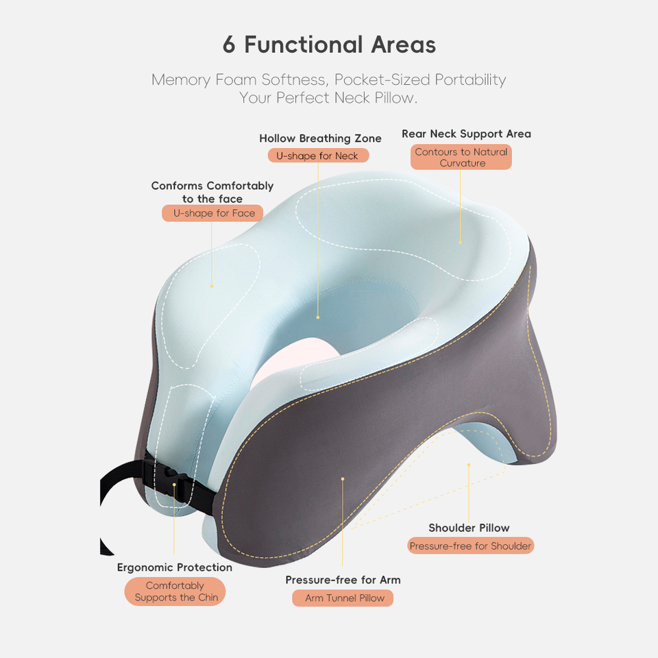 Almohada Ortopédica en Forma de U Personalizable YUE RISE, Almohada de Viaje de Espuma Viscoelástica para Autos, Trenes, Hogar, Oficinas y Vuelos