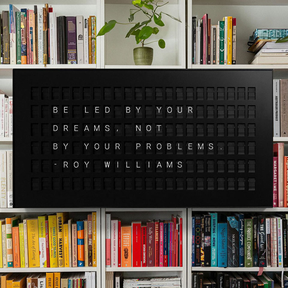 Pantalla de Mensajes Programable YUELI Vestaboard, Letrero de Solapa Dividida Controlado por Aplicación, Actualizaciones en Tiempo Real para Aeropuertos, Hoteles y Empresas