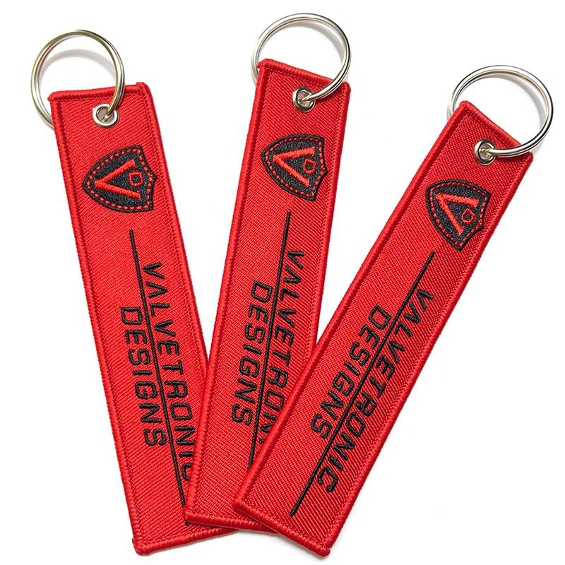Nombre del producto::Nuevo diseño de llavero con forma personalizada, bordado y anilla para llaves.