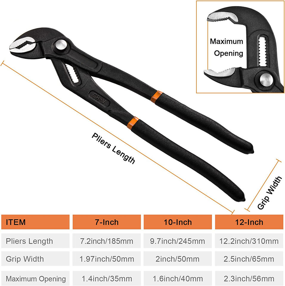 Nombre del producto:Alicates de lengüeta y ranura de 7-10-12 pulgadas