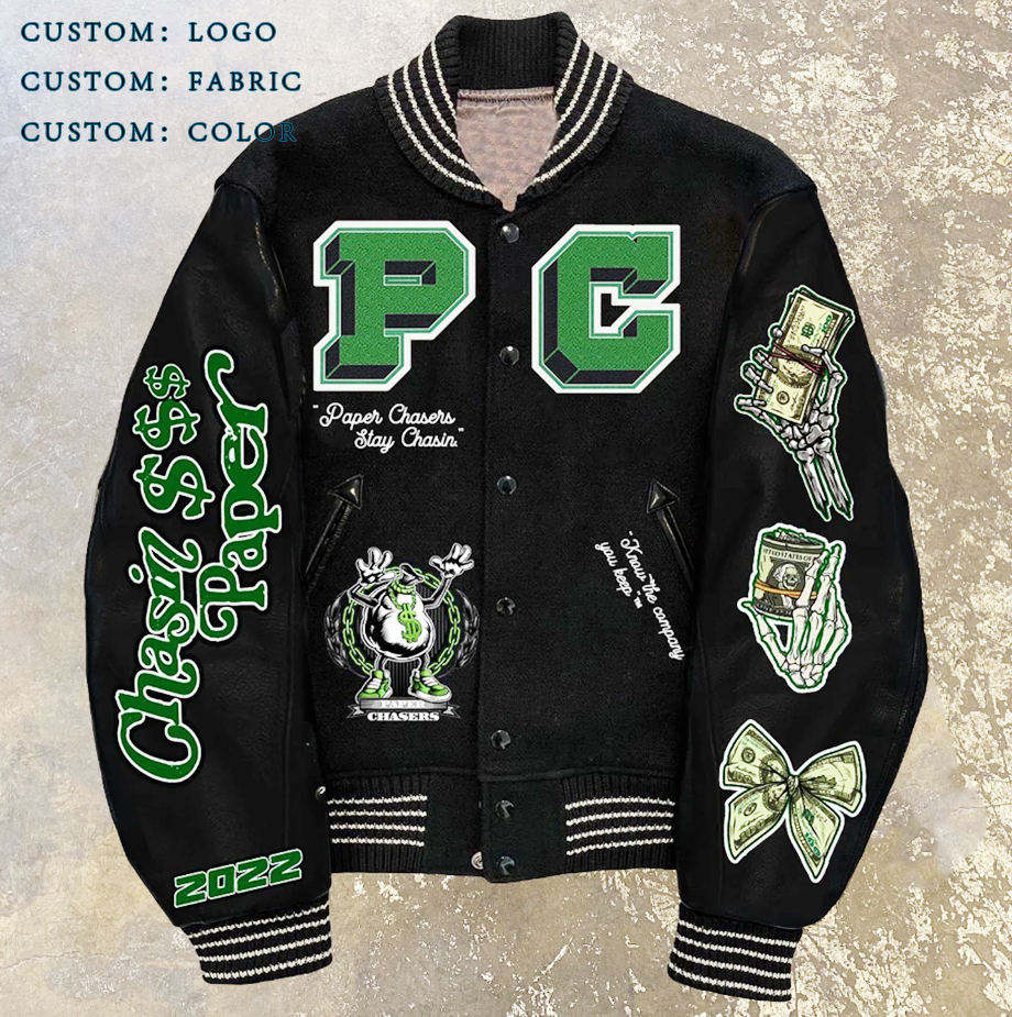 Chaqueta Universitaria de Béisbol Personalizada con Mangas de Cuero y Bordado de Alta Calidad al por Mayor de YUJIA OEM