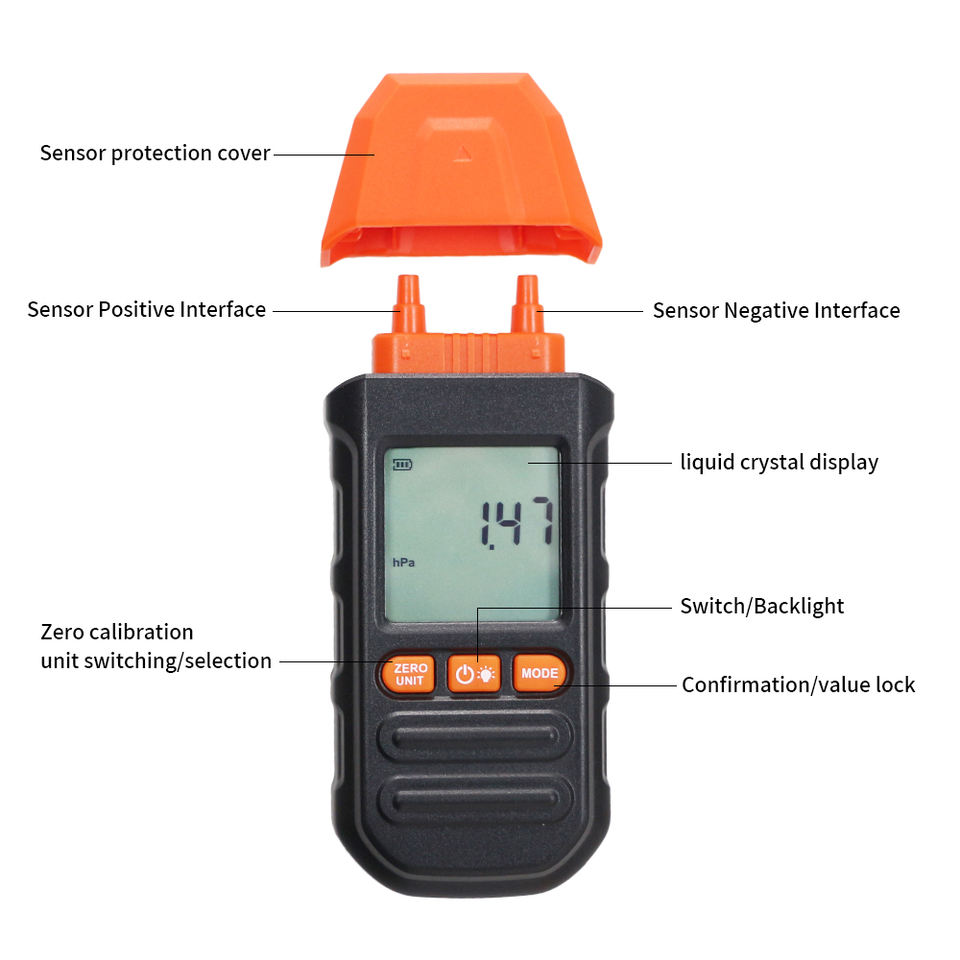 Parámetros de medición:Diferencia de presión; velocidad del viento