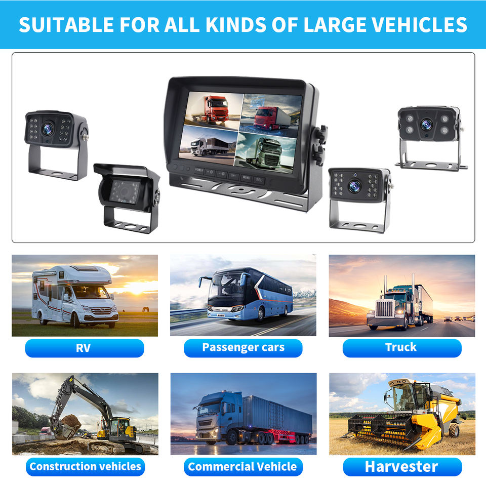 YWX Track RV Caravan Bus Trailer 9 "Quad 1080p Pantalla dividida para coche Camión Monitor Pantalla Grabación Sistema de kit de cámara trasera
