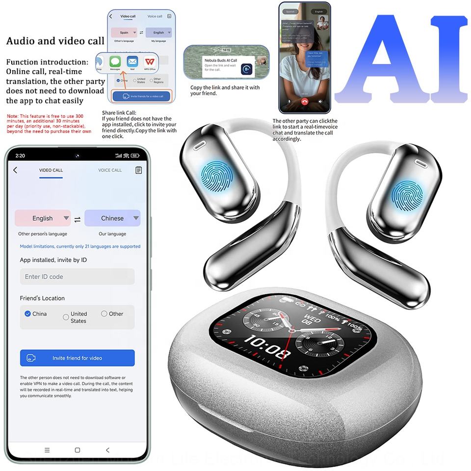 Auriculares Inalámbricos OWS YYK-Q16 Pro con Pantalla Táctil a Todo Color y Función de Traducción de Idiomas Permanente y Gratuita