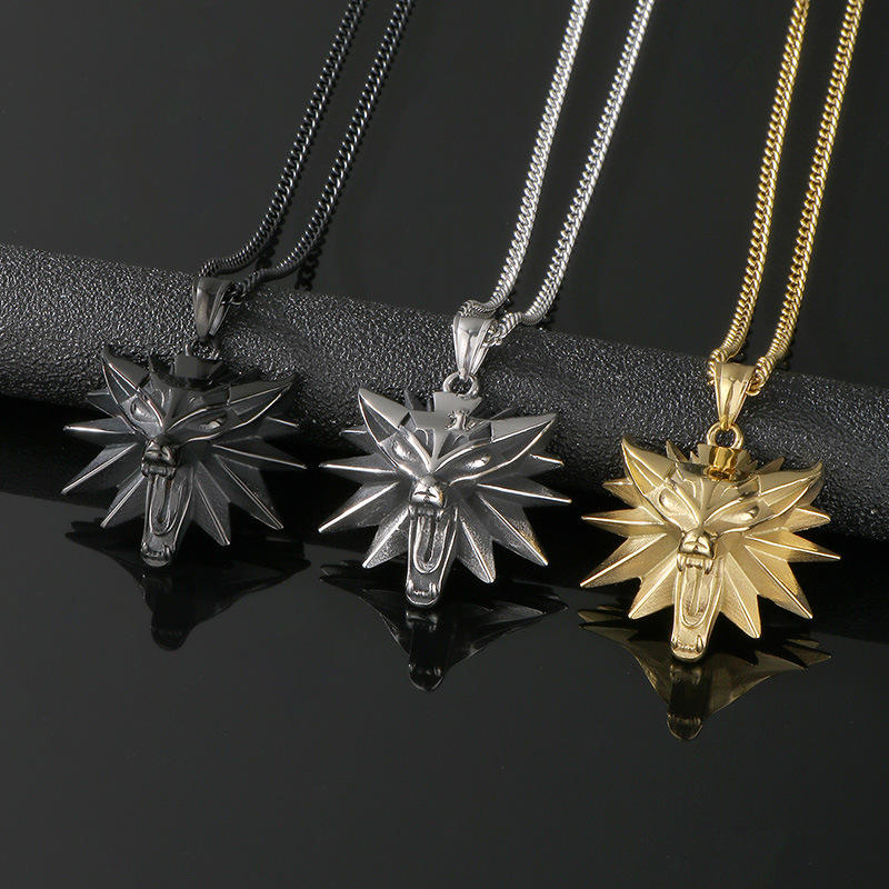 Collar con Colgante de Cabeza de Lobo de The Witcher 3, Estilo Punk de Acero de Titanio con Forma de Animal, para Hombre, Comercio Exterior, AliExpress