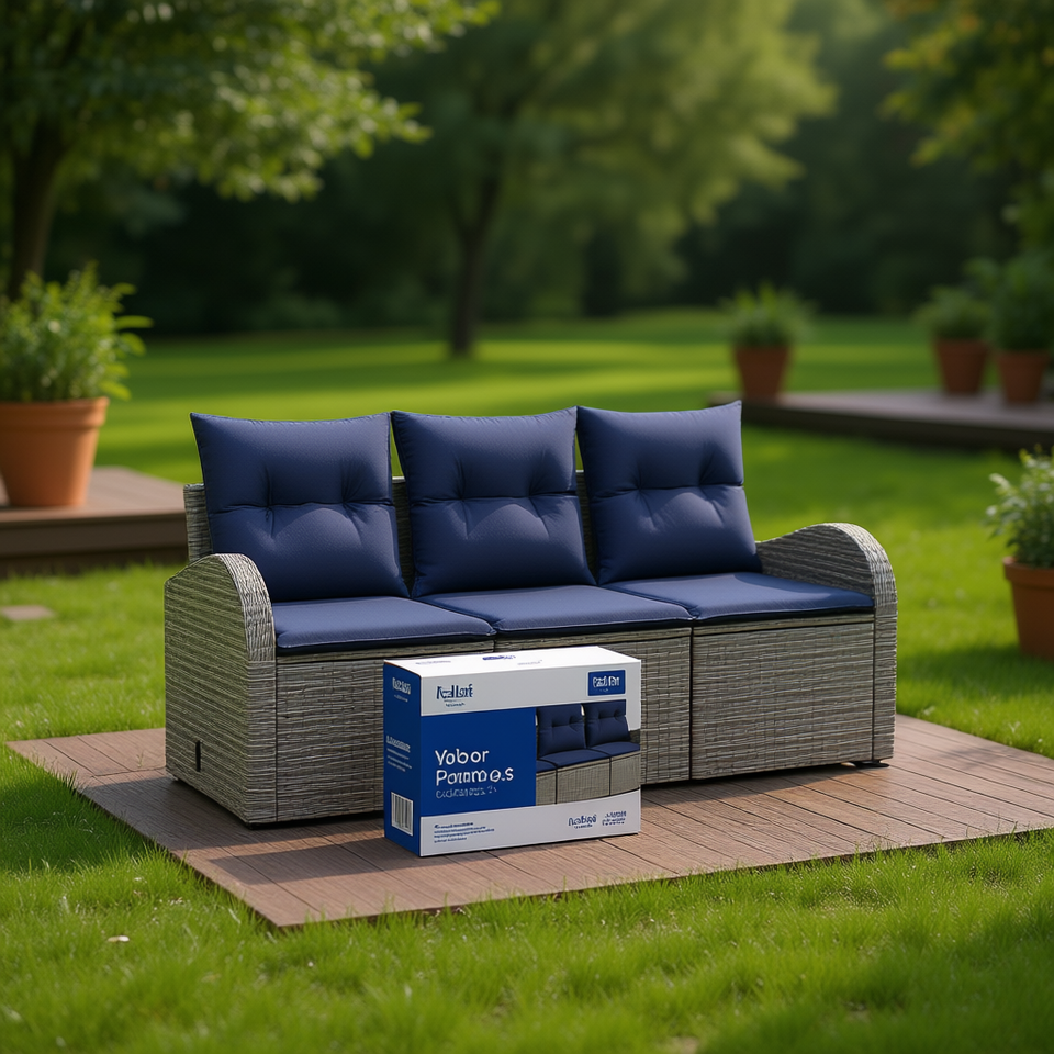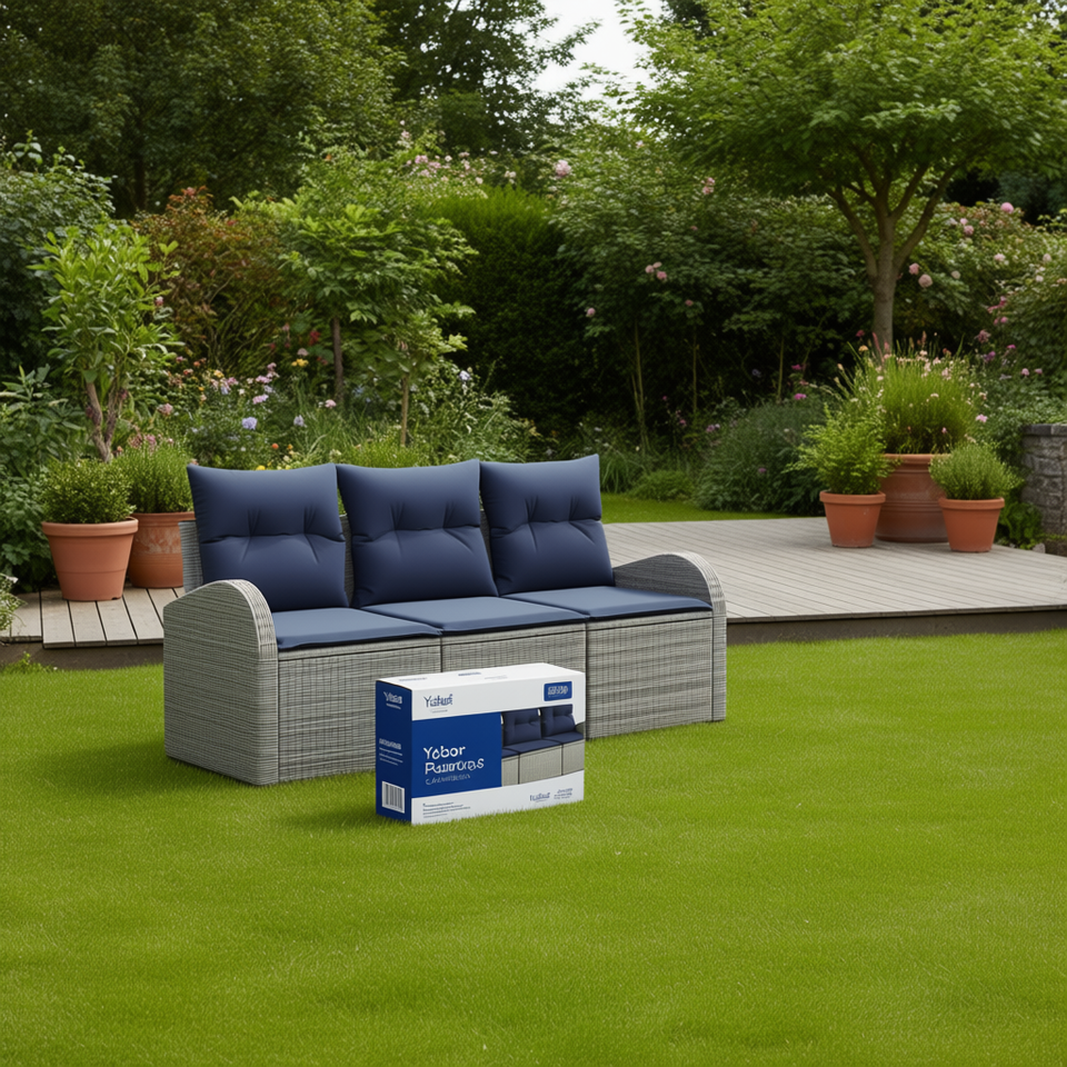 Sofá de Jardín Yabor de Poliratán de 3 Plazas, Resistente a la Intemperie, Diseño Contemporáneo