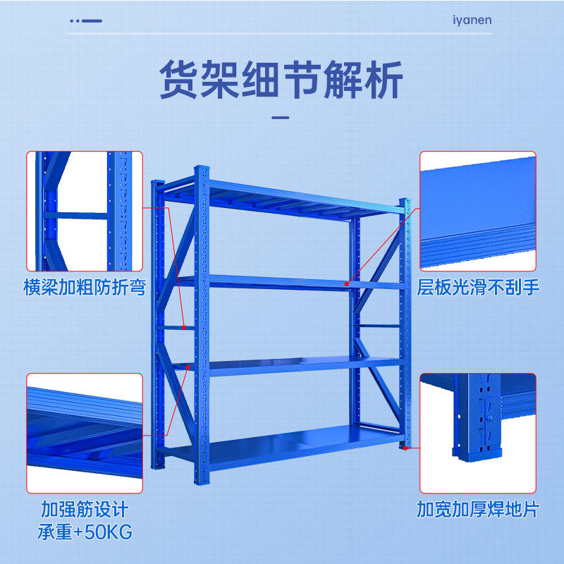 Estanterías de almacenamiento multicapa Yanen de 3 niveles, de acero laminado en frío azul, ajustables, para uso en fábrica y hogar.