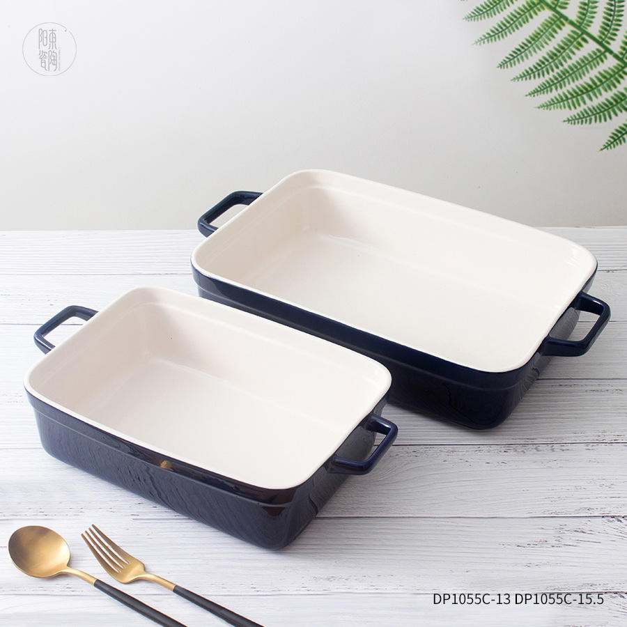 Bandeja Rectangular para Hornear de Cerámica Yangdong, Color Azul Zafiro DP1055C 13 15.5, Apta para Horno y Microondas