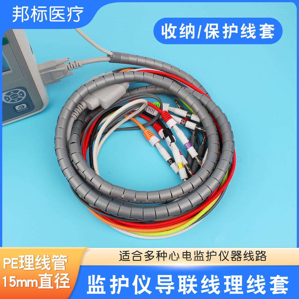 Funda Protectora para Cable de Monitor ECG Yankee Med, 15 mm de Diámetro, 1 m de Longitud, Cubierta de Plástico Negra para Cable con Clip