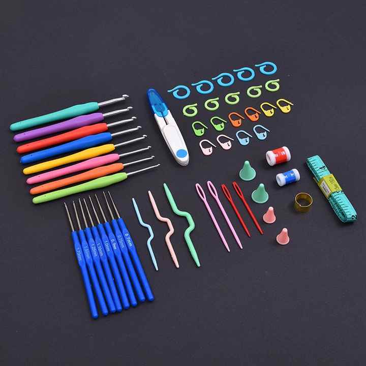 Set de Ganchillos y Agujas de Plástico para Tejer, Ganchos de Varios Tamaños, Accesorio de Costura Cuadrado, Regla de Medición Colorida para Puntos