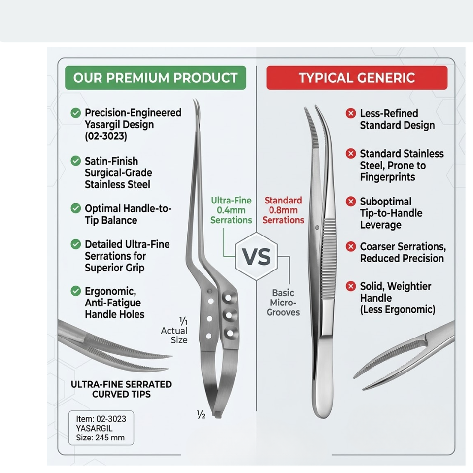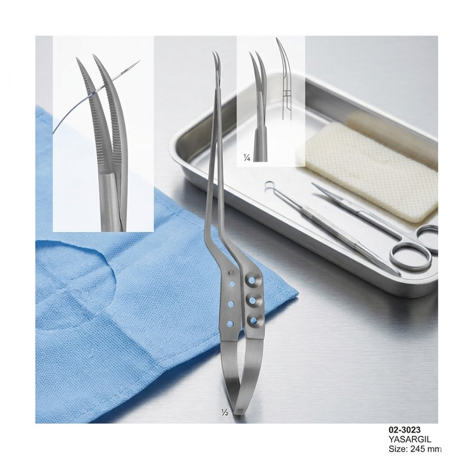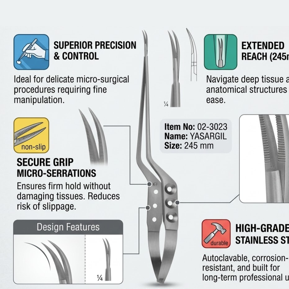 Microtijeras de Bayoneta Yasargil, Tipo Resorte, 245 mm – Instrumento Neuroquirúrgico de Precisión