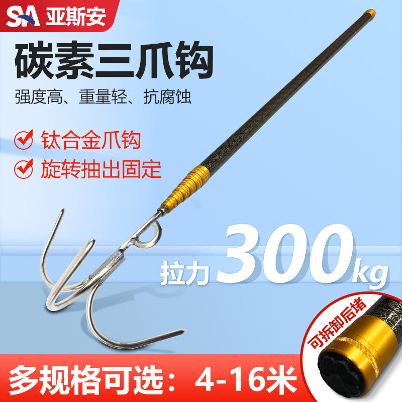 Yasian Gancho de Rescate Acuático, Varilla Telescópica de Fibra de Carbono con Gancho de Anclaje Triangular de Aleación de Titanio, Poste de Salvamento Marino