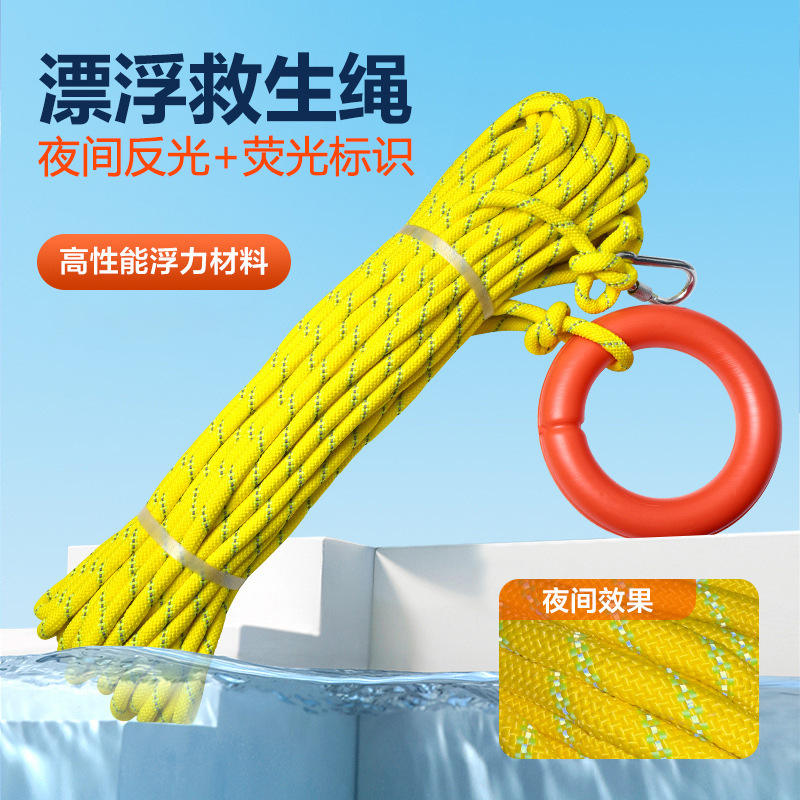 Cuerda de Rescate Acuática Yasian de 9.5mm, Alta Flotabilidad, Reflectante, Equipo de Supervivencia con Anillo Fluorescente para Uso Seguro