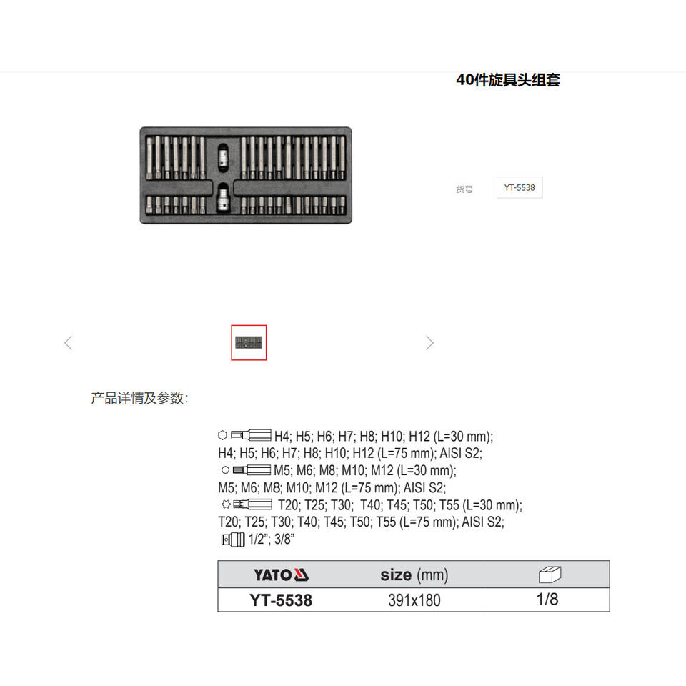 Juego de puntas de destornillador Yato de 40 piezas, tamaño de enchufe de 1/8 de pulgada, para herramientas de reparación de automóviles y mecánica