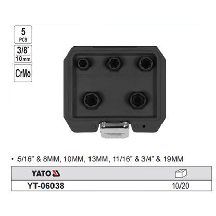 Juego de Extractores de Pernos Yato de 5 Piezas, 3/8 Pulgadas, Juego de Extractores de Tornillos Dañados de Uso Industrial, YT-06038