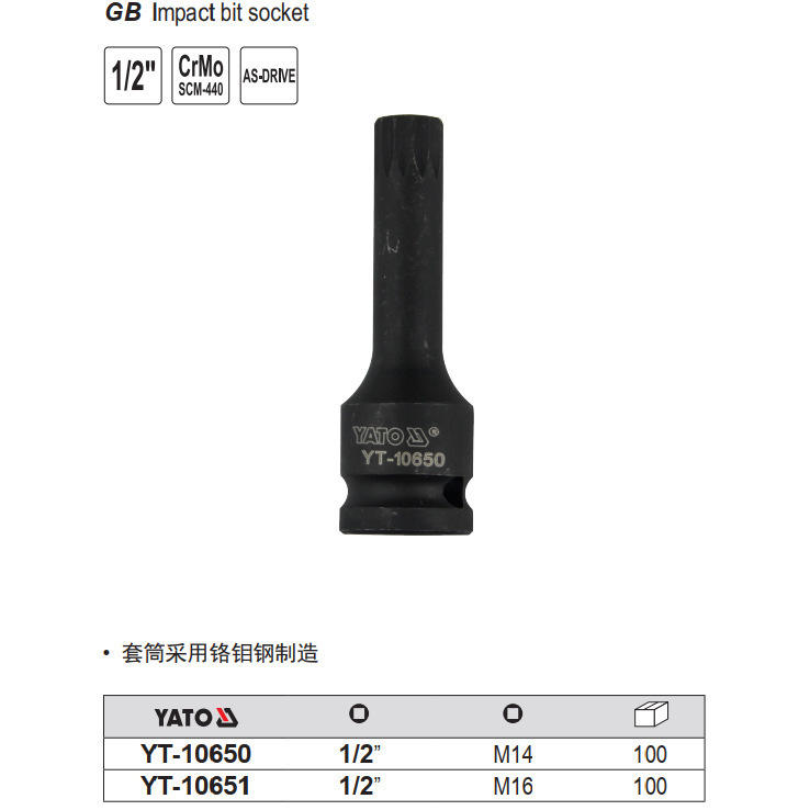 Punta de destornillador neumática Yato de 1/2 pulgada, de acero al cromo vanadio, para reparación de automóviles