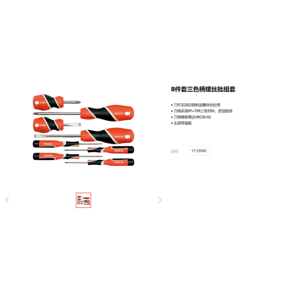 Juego de destornilladores Yato de 8 piezas con punta magnética de acero S2 para reparaciones de bricolaje