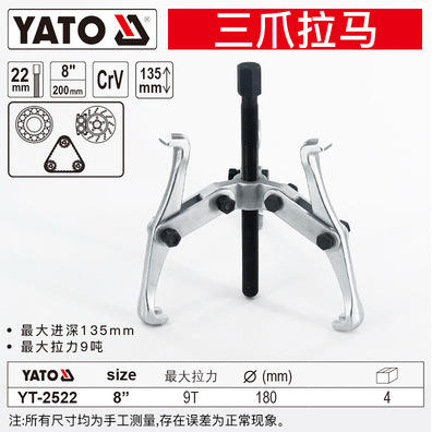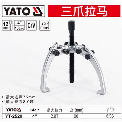 Extractor de Engranajes Industrial Yato de Tres Garras 3 en 1, Fuerza Máxima de Tracción 1.5T, Modelo YT-2519