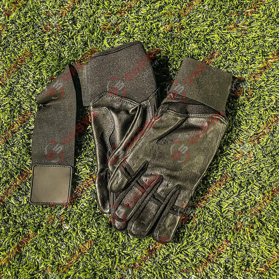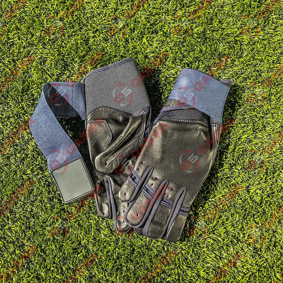Guantes de Bateo de Béisbol de Cuero con Correa Larga en Color Amarillo y Negro para Jugadores de Equipo