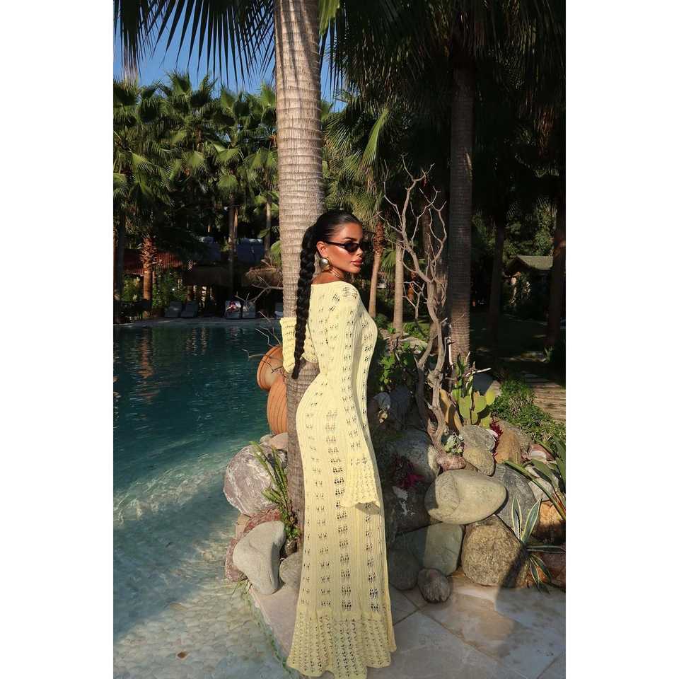 Vestido Largo con Detalle de Botones Amarillos, Vestido Corto Elegante y de Lujo para Mujer, Talla XL, Estilo Imperio, Color Sólido, para Fiestas Diurnas de Otoño