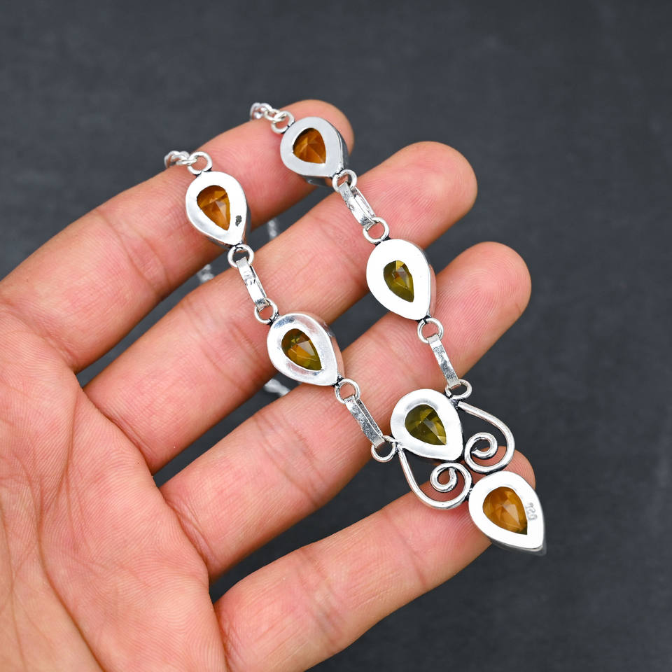 Collar de Plata de Ley con Perla de Agua Dulce en Forma de Pera y Citrino Amarillo Creado en Laboratorio, 18 Pulgadas, Joyería de Lujo para Regalo de Boda