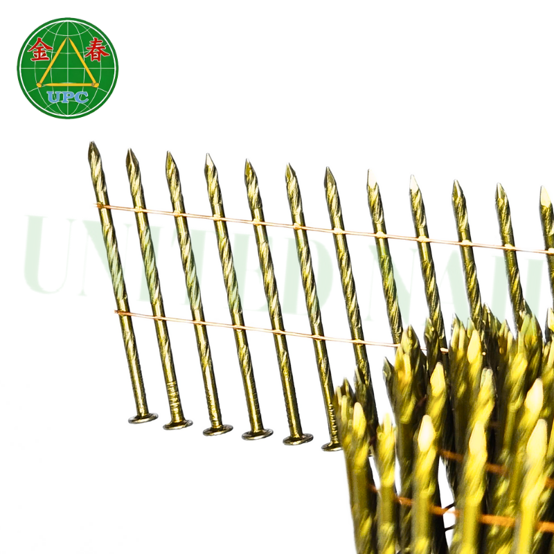 Clavos en espiral de grado industrial de 2 pulgadas con recubrimiento amarillo, tipo vástago liso/roscado y tamaños personalizados, los mejores precios de fábrica de Vietnam