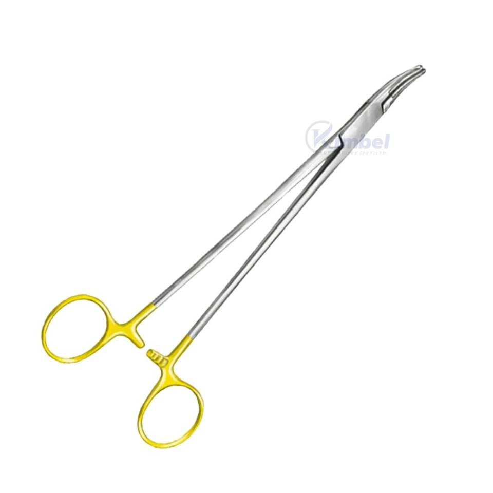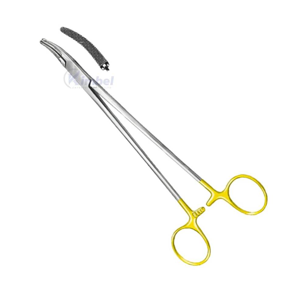 Pinzas Kelly de Color Amarillo con Revestimiento, Curvas, Cruzadas, con Mordazas con Inserto de Carburo de Tungsteno para Procedimientos de Sutura Quirúrgica