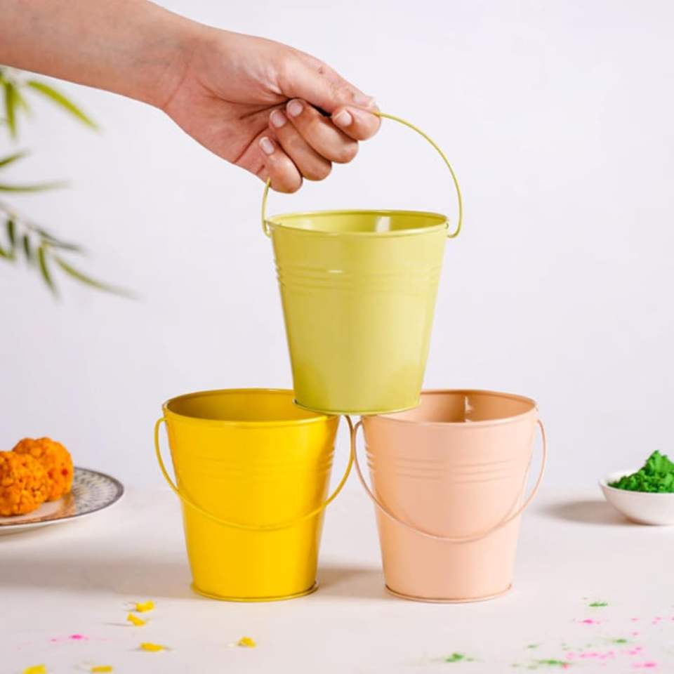 Cubo de cubo hecho a mano de Color amarillo, jardineras de flores de Metal galvanizado para decoración interior y exterior, cubo con asa