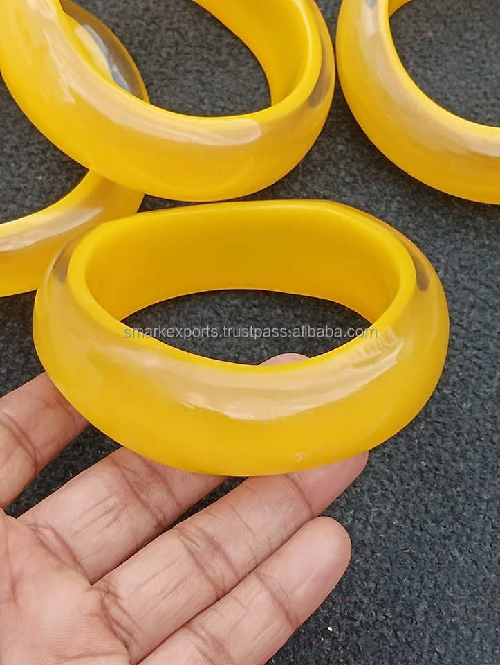 Brazalete de Resina con Forma de Domo Amarillo Intenso, Brazalete Ancho Brillante, Joyería de Moda Gruesa Hecha a Mano para Mujeres y Niñas con Estilo