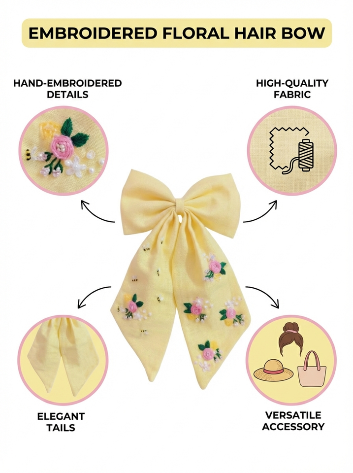 Lazo de Satén Amarillo con Bordado Floral, Hecho a Mano, para Decoración de Prendas y Envoltura de Regalos