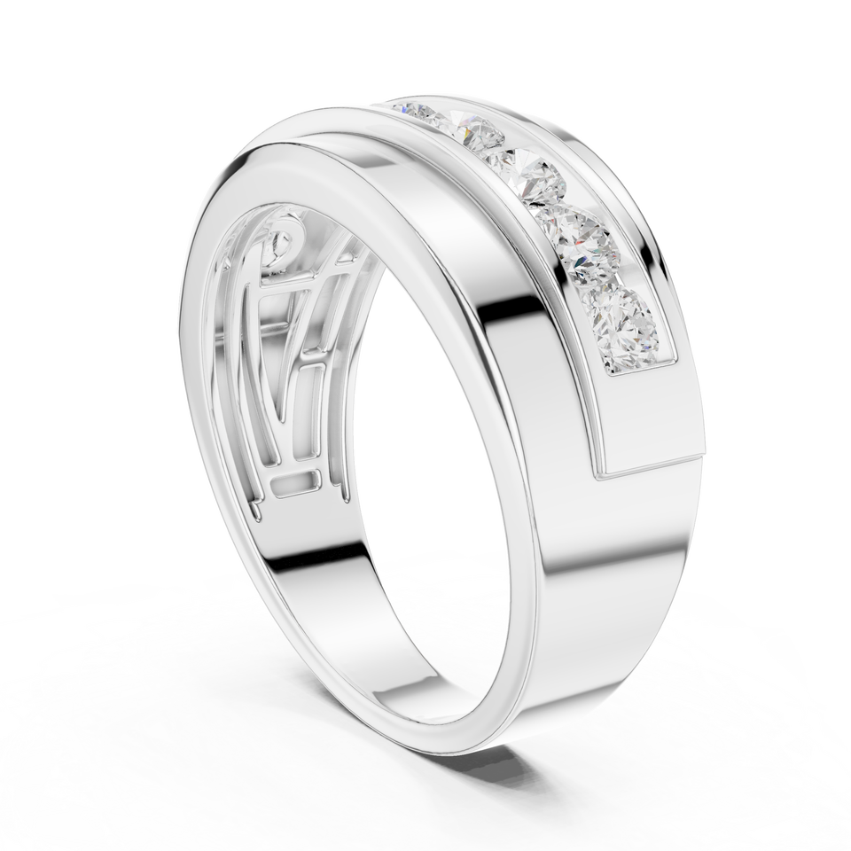 Anillo de boda para hombre con diamante cultivado en laboratorio en oro amarillo – Anillo de oro moderno, ancho y llamativo con diamantes