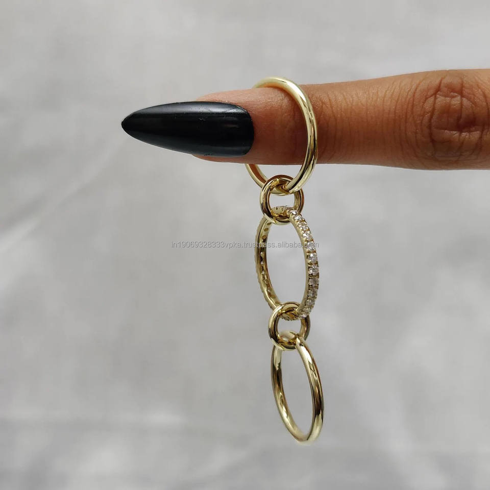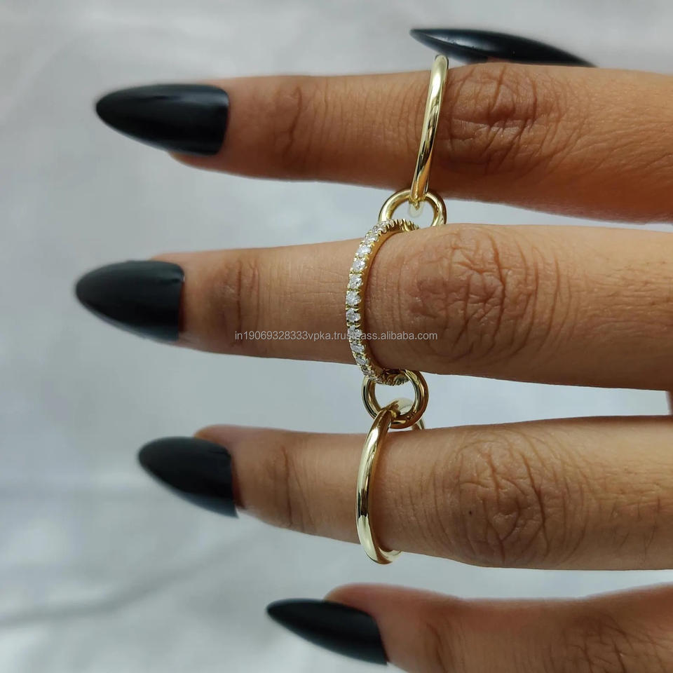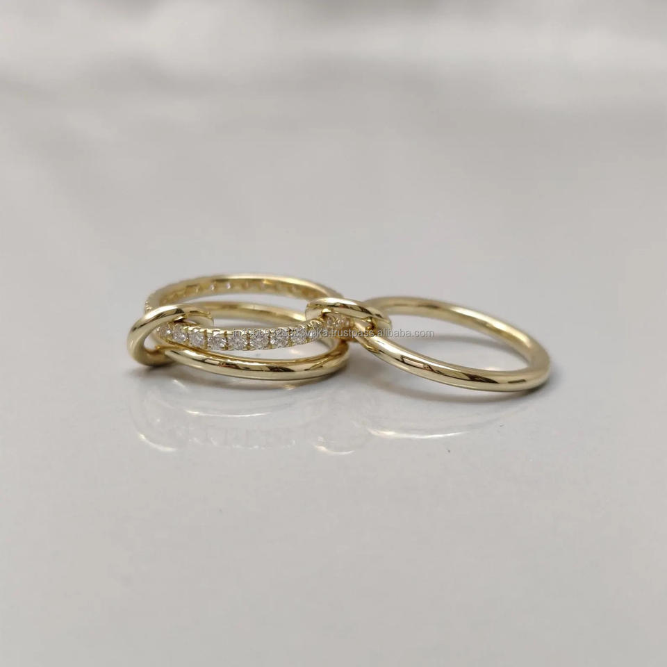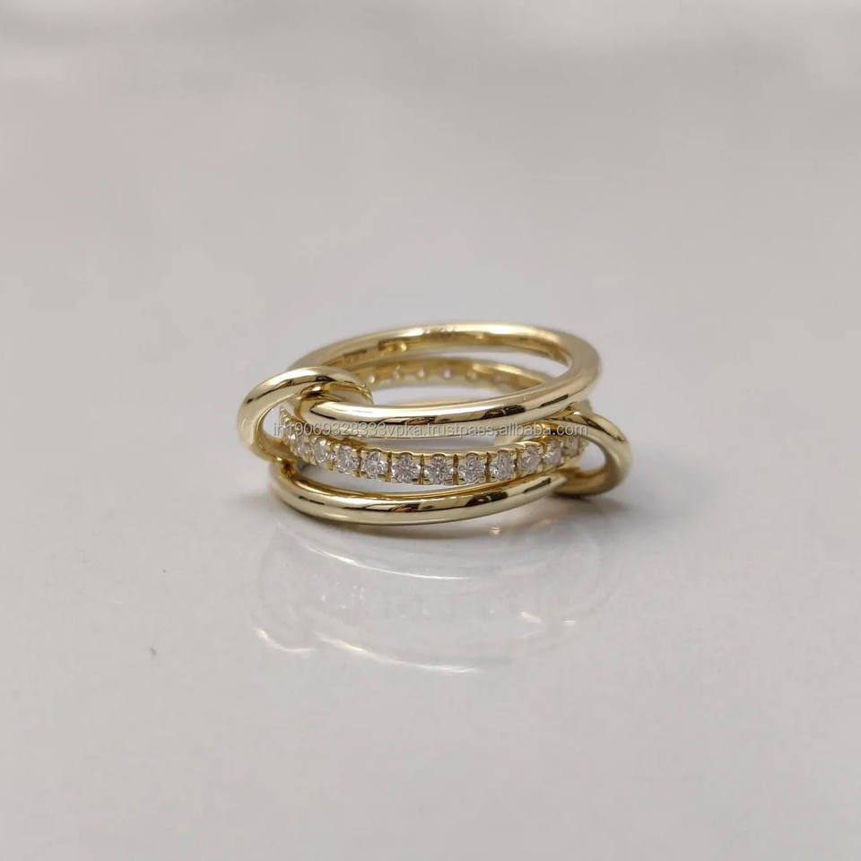 Anillo de Compromiso y Matrimonio de Plata de Ley con Moissanita de Corte Redondo y Conector de Eslabones Múltiples en Oro Amarillo