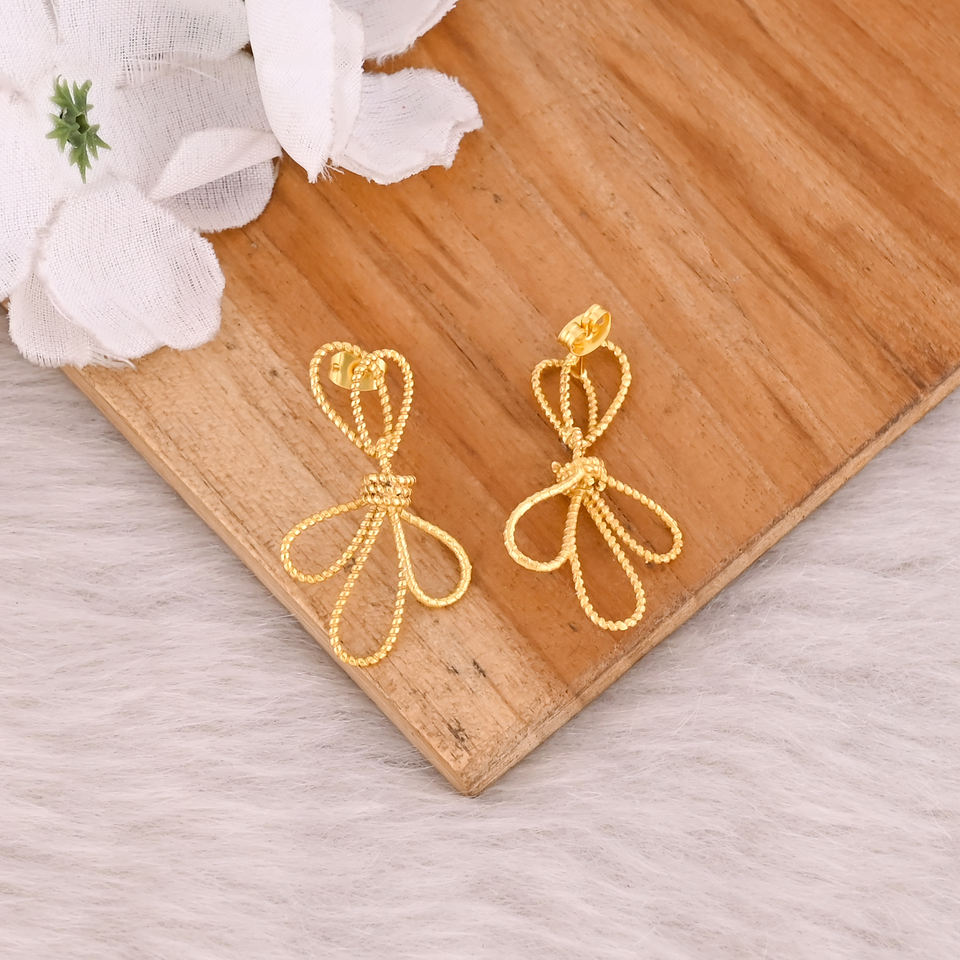 Pendientes de Botón con Nudo Bohemio en Latón Chapado en Oro Amarillo, Joyería de Diseño Único para Bodas y Fiestas, Estilo Clásico - Regalo Perfecto para Ella