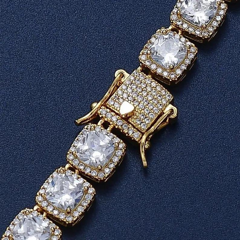 Pulsera de Tenis con Diamantes de Corte Cojín en Plata 925 con Piedras Simuladas Brillantes, Elegante y Lujosa