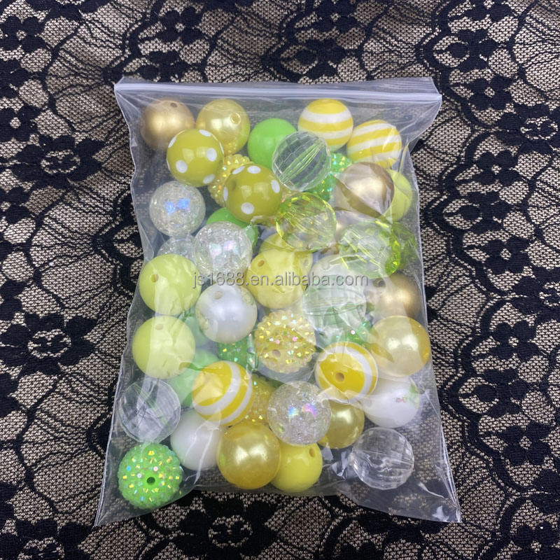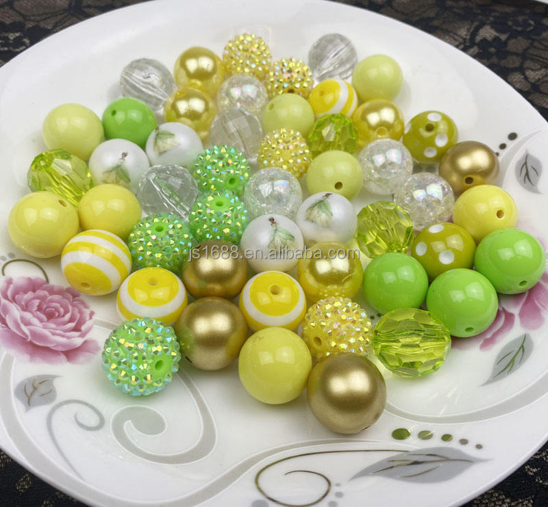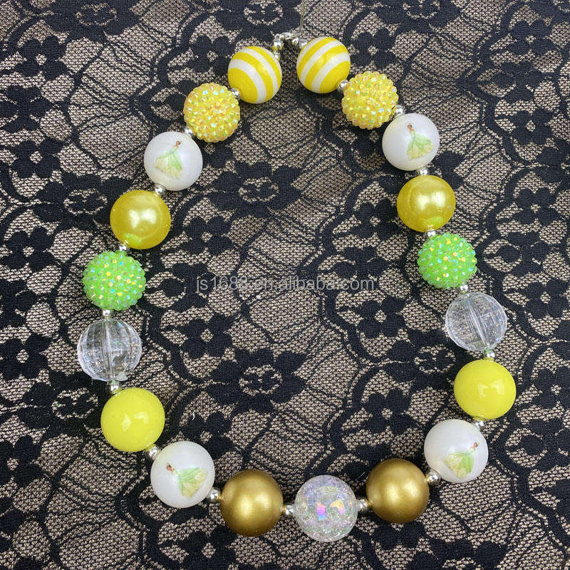 Cuentas acrílicas de estilo mixto con estampado de princesa verde amarilla para hacer joyas, cuentas redondas de chicle de 20mm para bolígrafos, venta al por mayor