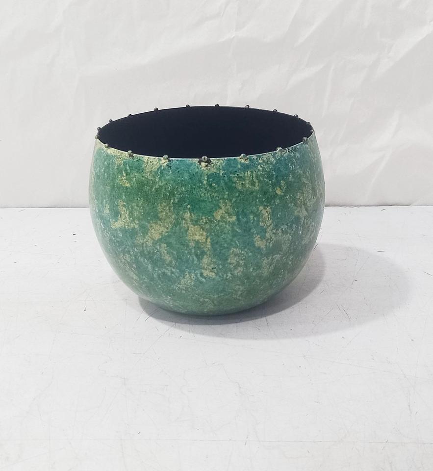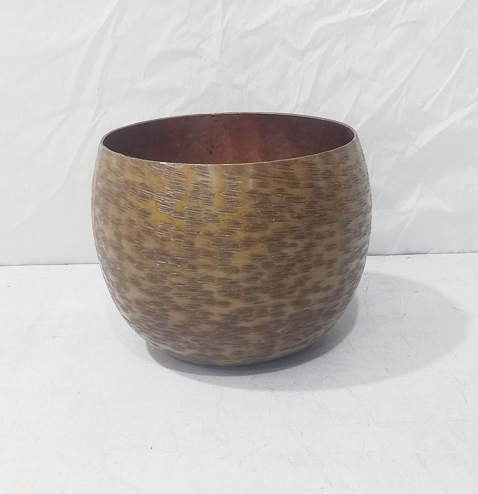 Maceta Redonda de Metal con Acabado Dorado Texturizado, Maceta Decorativa para Interiores y Exteriores, Maceta Moderna de Hierro para Hogar y Balcón