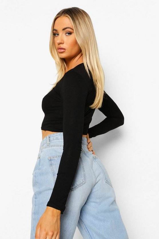 Top corto amarillo con mangas en capas y dobladillo con nudo, camisetas cortas de algodón para mujer, Top Atlético recortado liso de manga corta con cuello redondo