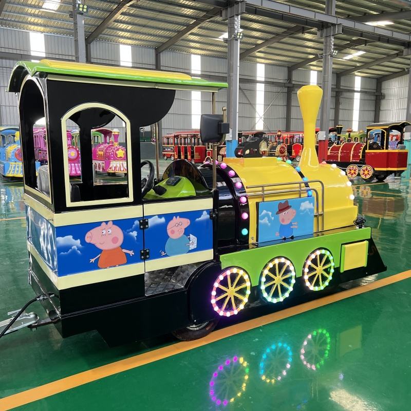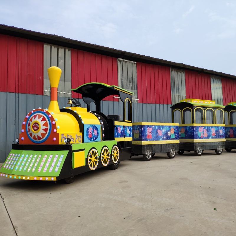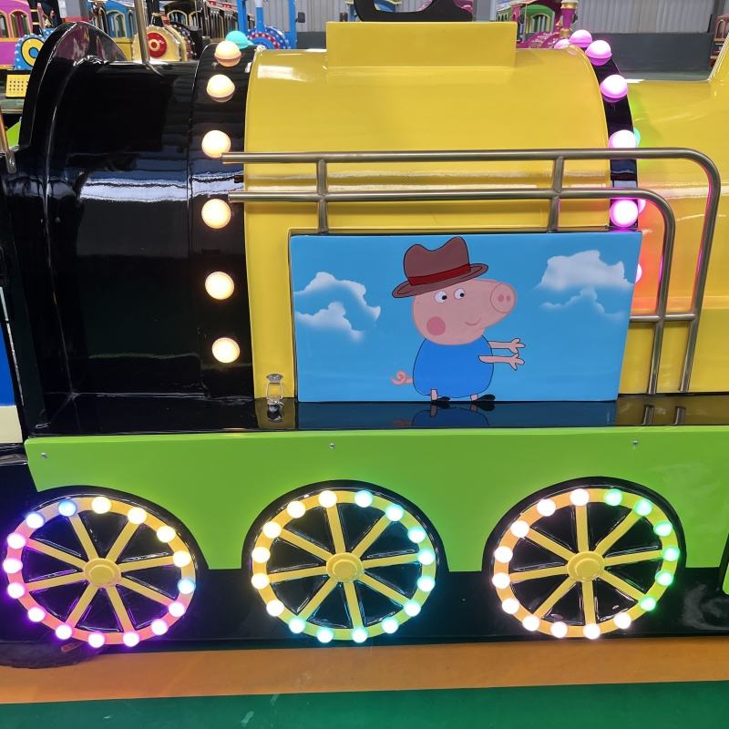 Tren turístico eléctrico sin rieles de Peppa amarillo para niños, centro comercial interior y paseos en tren para niños, equipo de entretenimiento