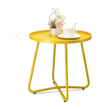 Mesa auxiliar redonda moderna para patio con revestimiento de polvo amarillo, mesa pequeña de Metal para patio, jardín, mesa auxiliar elegante para exteriores