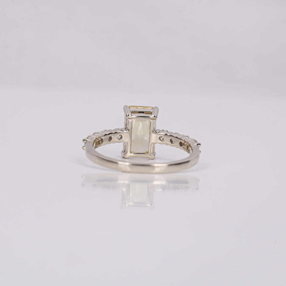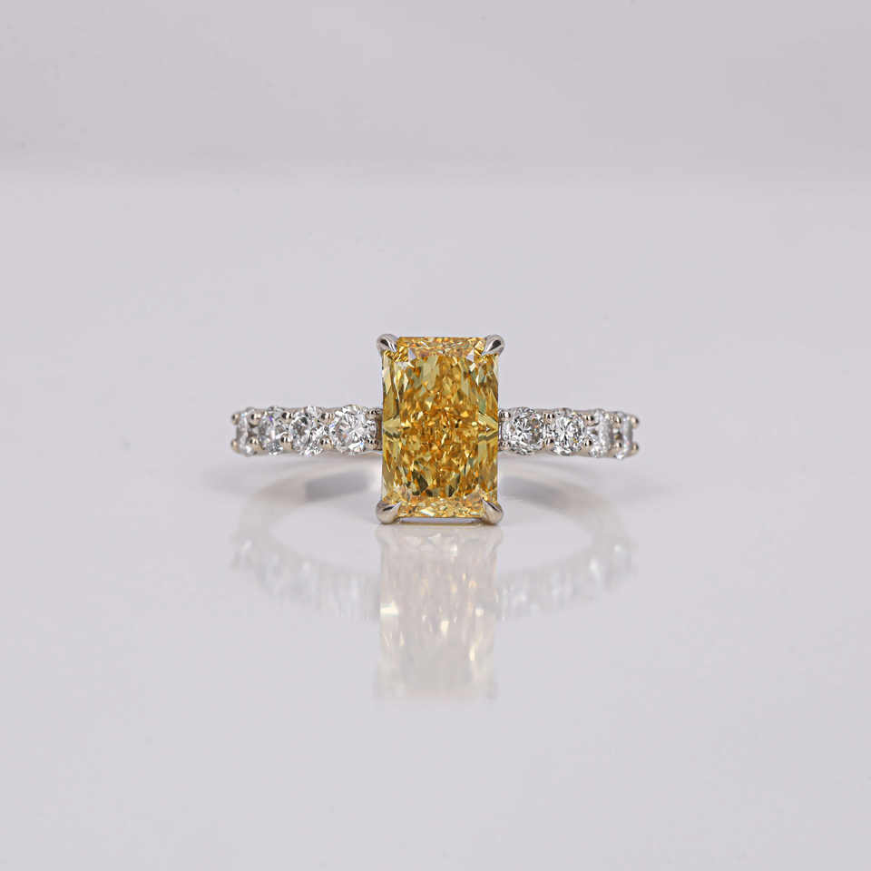 Anillo de compromiso de diamante cultivado en laboratorio de corte radiante amarillo 14K chapado en oro sólido Ajuste de pavé de moda certificado IGI para mujer 2,5-2,8