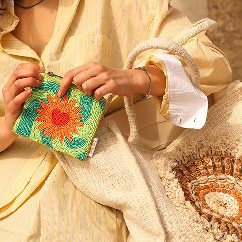 Monedero Vaquero Amarillo Rani Blanco de Alta Calidad con Cuentas, Hecho a Mano, Mini Monedero Occidental con Cierre de Cremallera, Material de Algodón