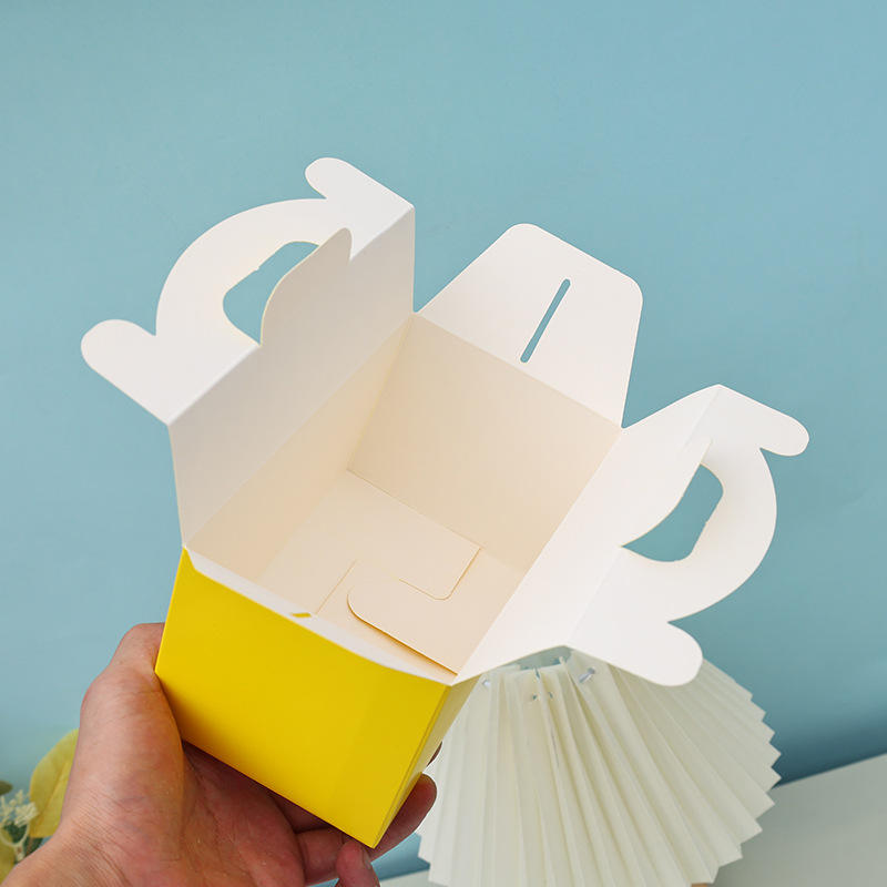 Caja rectangular amarilla para hornear con asa, ecológica, para postres y pasteles, ideal para fiestas de cumpleaños.