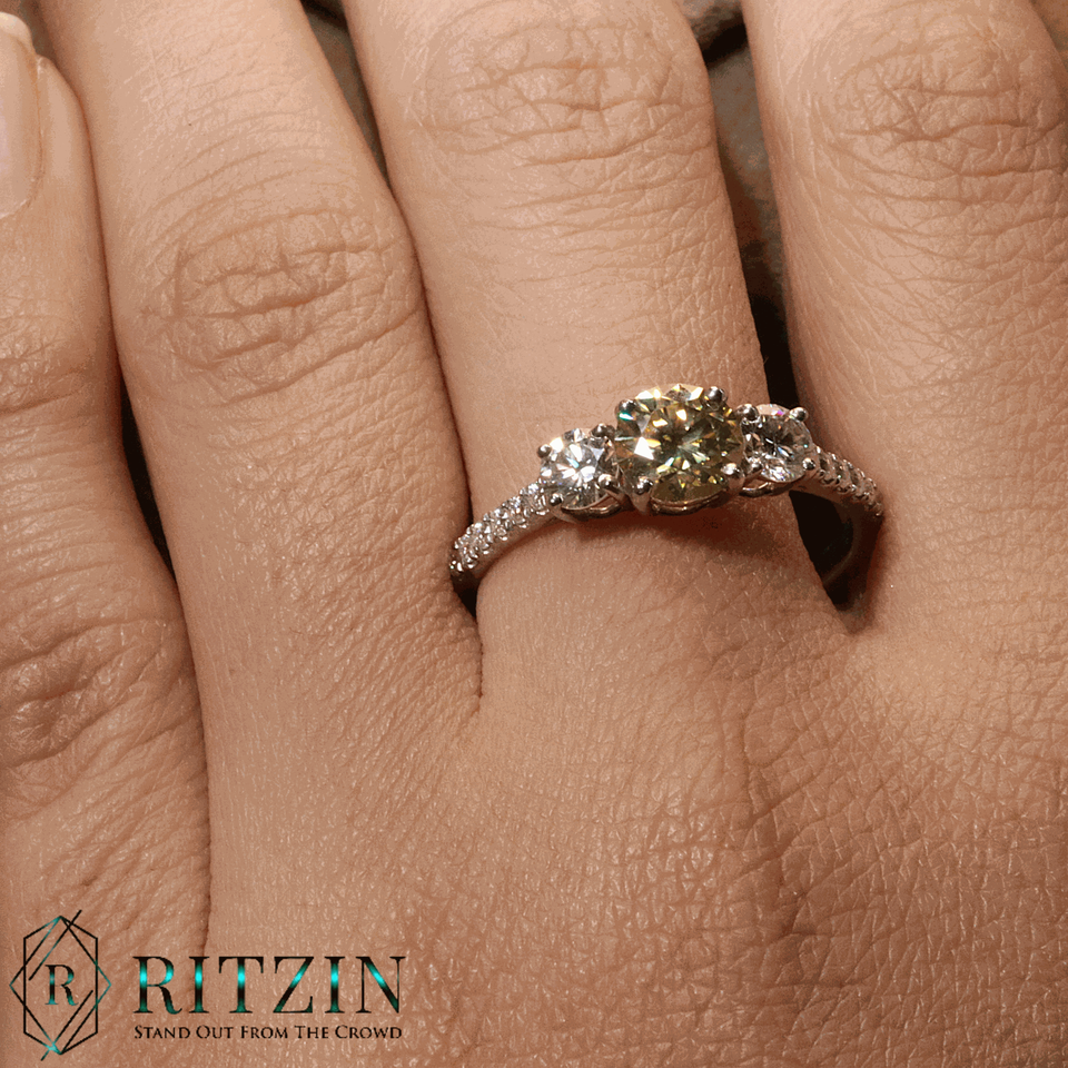 Anillo de Compromiso de Plata de Ley con Moissanita Amarilla de Corte Redondo y Detalles en Plata de Ley para Mujer